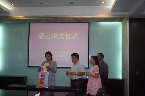 近日,區自來水公司、惠民公司主動結合黨的群眾路線教育實踐活動“惠民實事工程”的開展,積極響應市民觀察團和小艷子志愿者協會的倡議,在公司內進行廣泛深入宣傳,組織廣大干部職工為武堅鎮身患尿毒癥的女大學生凌金華進行愛心捐款。在6月26日下午的捐款儀式上,公司領導和水益坊志愿者組織、三大創建班組(便民維修班、中心化驗室、城區供水服務中心)以及勞模先進代表踴躍帶頭,公司各部門干部職工積極參與,紛紛伸出援助之手,慷慨解囊,奉獻出自己的愛心,在不到1個小時的捐款活動中,共募集12600元愛心善款。此筆捐款已于6月28日隨區市民觀察團、小艷子志愿者協會、江都論壇的特別“愛心快車”送到正在上海住院治療的凌金華手中。