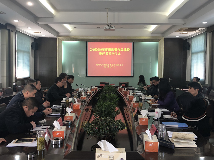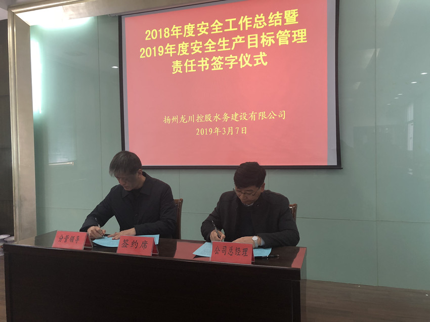 為切實加強和維護好公司一年一度的安全和諧與穩定,層層落實好公司的各項廉政暨作風建設責任,深入推進公司黨風廉政建設、反腐敗和安全工作,3月7日下午,揚州龍川水務公司舉行了2019年度安全生產目標管理責任書和廉政暨作風建設責任書簽訂儀式。公司黨政領導班子全體成員及各分公司和各部門所有負責同志都參加了會議。