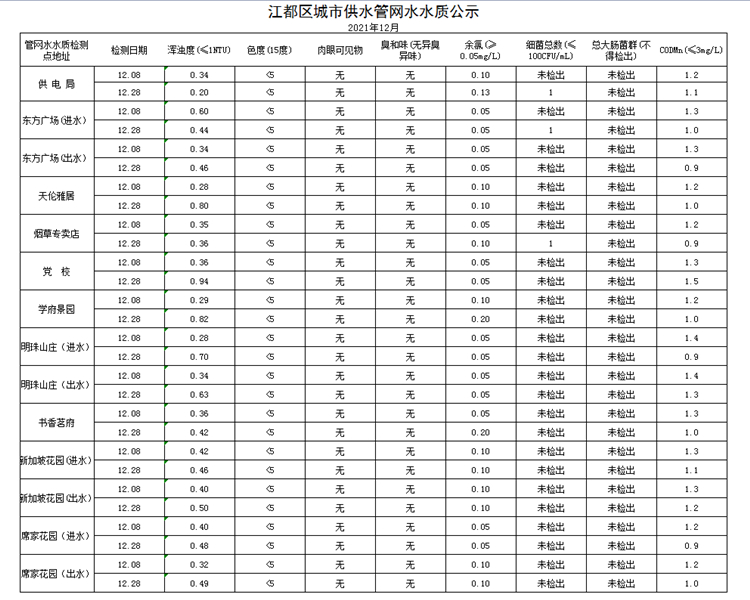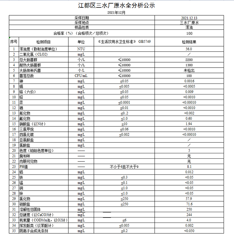 水質(zhì)公示