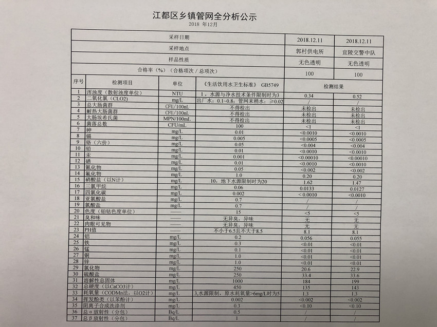 2018年12月江都區鄉鎮管網全分析公示