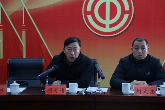 公司執行董事、黨總支書記張勇同志宣讀區總工會批文