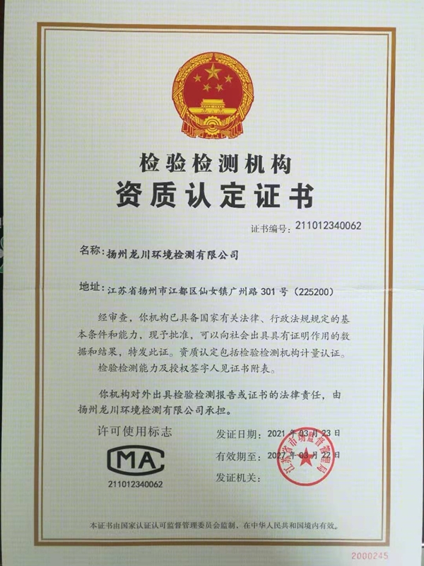 日前,從江蘇省市場(chǎng)監(jiān)督管理局傳來喜訊,揚(yáng)州龍川水務(wù)下屬龍川環(huán)境檢測(cè)公司經(jīng)過材料準(zhǔn)備、網(wǎng)上申請(qǐng)、現(xiàn)場(chǎng)評(píng)審、整改提高等環(huán)節(jié),順利通過國家檢驗(yàn)檢測(cè)機(jī)構(gòu)CMA資質(zhì)認(rèn)定,獲得國家檢驗(yàn)檢測(cè)機(jī)構(gòu)資質(zhì)認(rèn)定證書,這是對(duì)龍川環(huán)境檢測(cè)公司檢驗(yàn)檢測(cè)技術(shù)能力的肯定,標(biāo)志著公司在質(zhì)量管理、服務(wù)社會(huì)水平等方面跨上了一個(gè)新的臺(tái)階。