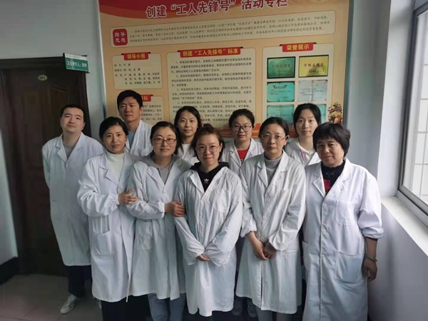 圖為環境檢測公司中心化驗室全體成員在創爭專欄前合影