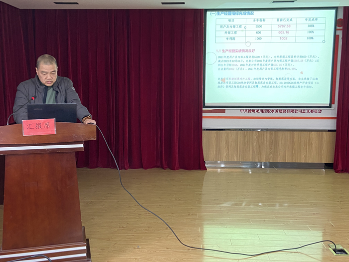 在本次大會(huì)匯報(bào)交流環(huán)節(jié),分別聽取了計(jì)劃財(cái)務(wù)部、運(yùn)營技術(shù)部、黨群工作部、自來水公司、惠民區(qū)域供水公司、龍泉建設(shè)工程公司、龍川污水處理公司等七個(gè)部門單位2021年工作總結(jié)報(bào)告。各部門、子公司負(fù)責(zé)人分別圍繞2021年全年生產(chǎn)經(jīng)營指標(biāo)、重點(diǎn)工作完成情況、存在的主要問題、解決對(duì)策以及2022年工作計(jì)劃作了交流匯報(bào)。
