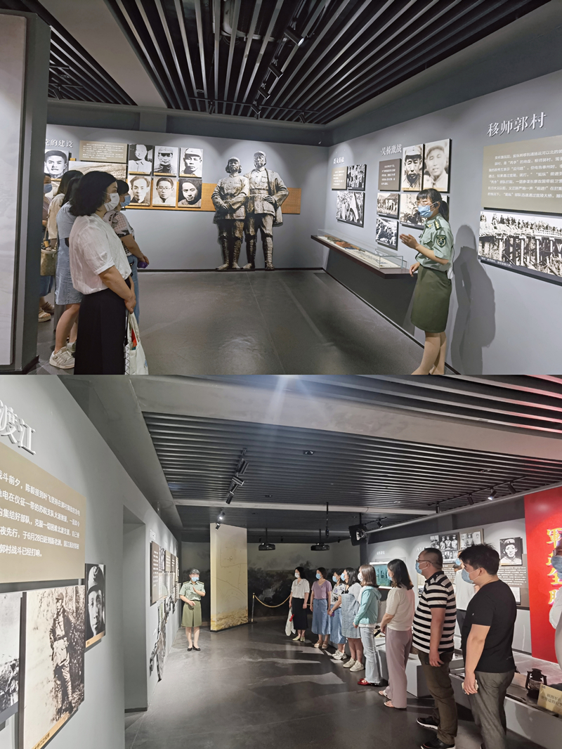大家在講解員的引領(lǐng)下,先后認(rèn)真參觀了郭村保衛(wèi)戰(zhàn)紀(jì)念館、新四軍蘇北指揮部紀(jì)念館,觀看歷史圖片展覽、烈士遺物、模擬戰(zhàn)役場景等,在一件件珍貴歷史文物前,駐足凝視,用心聆聽革命先烈的英勇事跡。展廳里的圖片、文字、油畫、地圖、報紙剪片、音像資料等,再現(xiàn)了郭村保衛(wèi)站當(dāng)年戰(zhàn)役的場景,震撼人心。