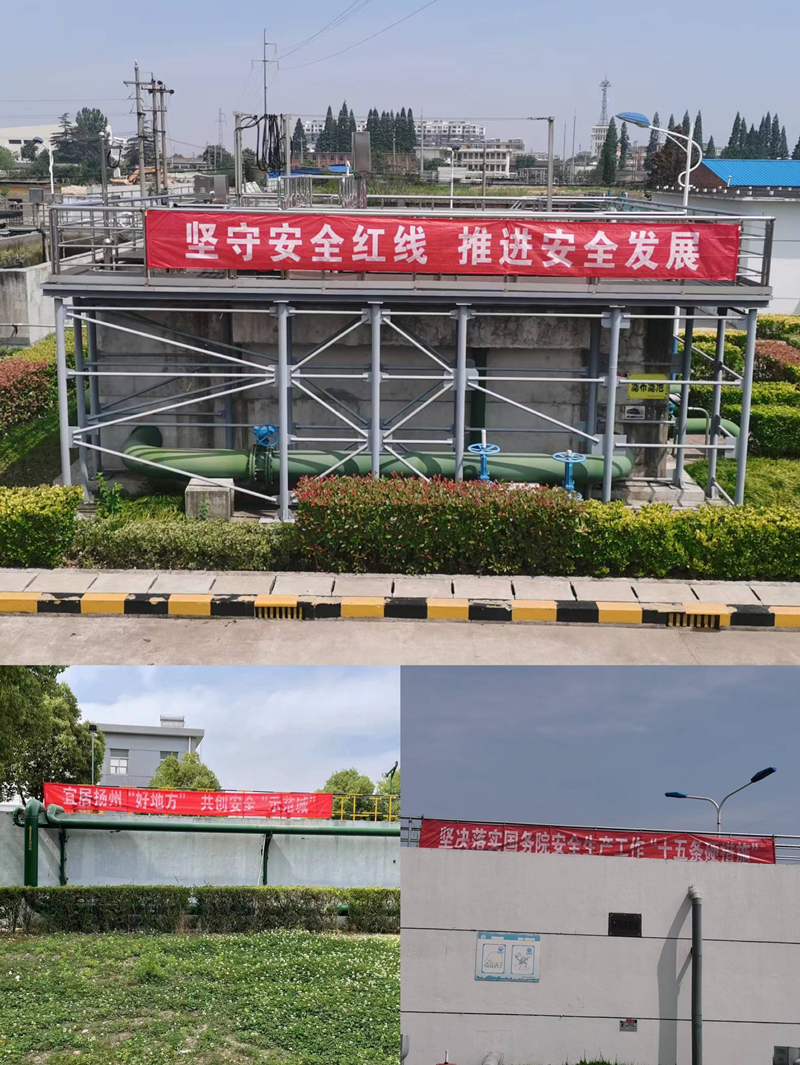6月初,各污水廠在廠區生產現場懸掛“安全生產月”主題橫幅,在通知欄張貼安全生產主題宣傳海報,營造了良好的安全生產氛圍。