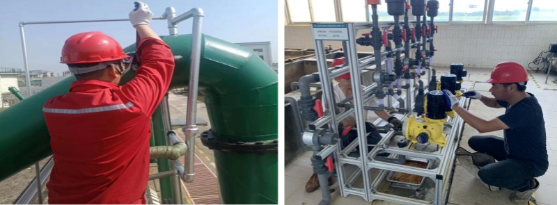 設(shè)施維護(hù)方面,第二、三水廠制水運(yùn)行人員增加供水設(shè)施的巡查頻次,細(xì)致察看設(shè)備的運(yùn)行狀況。機(jī)電維修人員每天按計(jì)劃對供水設(shè)施進(jìn)行定期保養(yǎng),做好三級維修保養(yǎng)記錄,保障生產(chǎn)的穩(wěn)定。