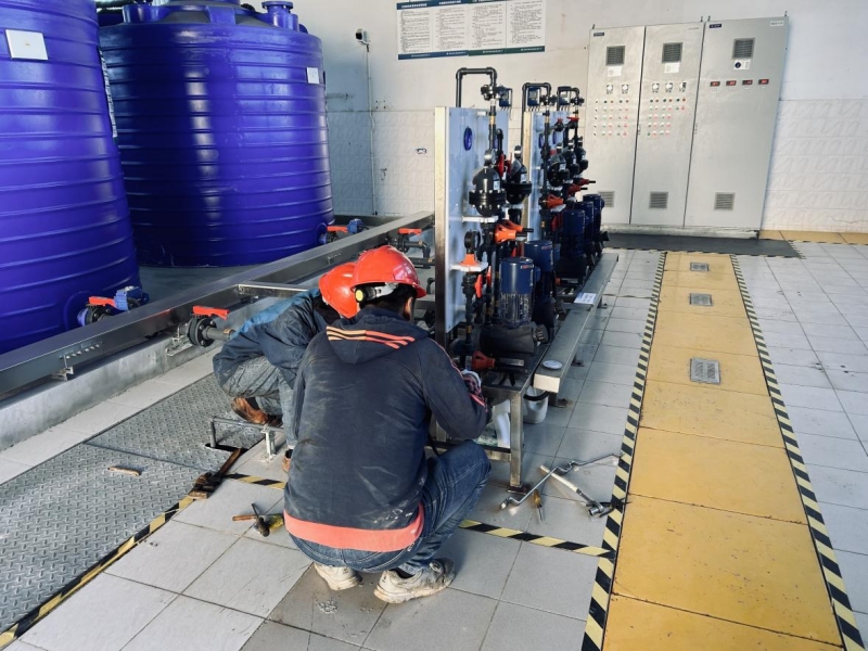 根據(jù)冬季運(yùn)行相關(guān)工作需要,江都區(qū)自來水有限公司下屬二、三水廠對(duì)泵房、加藥間、濾池等重點(diǎn)區(qū)域進(jìn)行了全面檢查,對(duì)裸露管道、閥門和儀器儀表等供水設(shè)施設(shè)備做好低溫防凍保護(hù),保證水廠冬季安全生產(chǎn)和供水保障工作有序開展。先后對(duì)次氯酸鈉投加設(shè)施、電氣控制柜、機(jī)泵等開展了維修和保養(yǎng),及時(shí)消除安全隱患,確保供水生產(chǎn)運(yùn)行穩(wěn)定。
