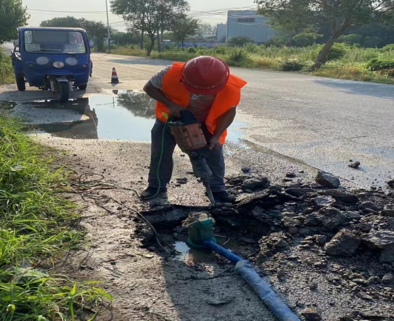 現在是上午7:00,室外的溫度已經達到35度,南片區維修工任國慶師傅已經開始他的日常維修工作。炎炎夏日,烈日當頭,任師傅揮動著電鎬開挖路面,汗流浹背,瀝青路面的溫度遠遠超出35度,但為了能夠第一時間恢復供水,再苦再累任師傅也毫無怨言,就這樣,在1小時后完成了維修,汗水已經浸濕了他的衣裳,但任師傅絲毫不敢逗留,趕緊整理好了工具,準備趕往下個維修地點。任師傅笑著說:我們的工作就是這樣,隨時都會有工單通知,隨時都在待命,工作嘛,苦點累點,沒事的。